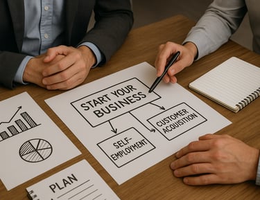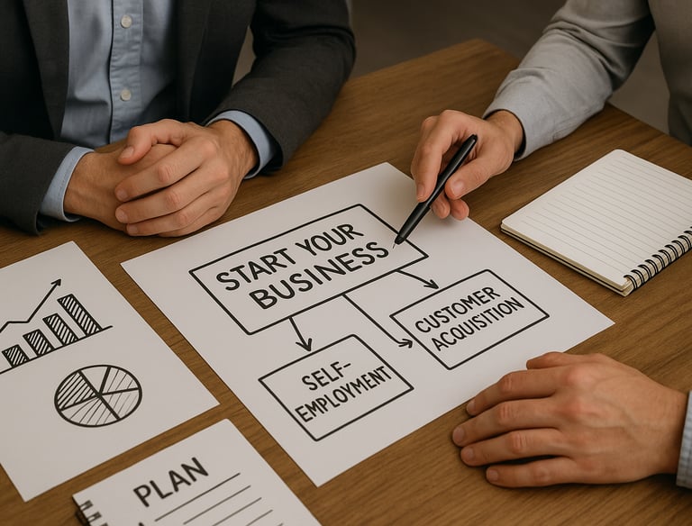 Beratung für die erste Schritte in die Selbstständigkeit und Kundengewinnung.